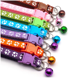 Multi Colors Safety Breakaway Quick Release Paw Print Small Animal Cat Collar With Bells